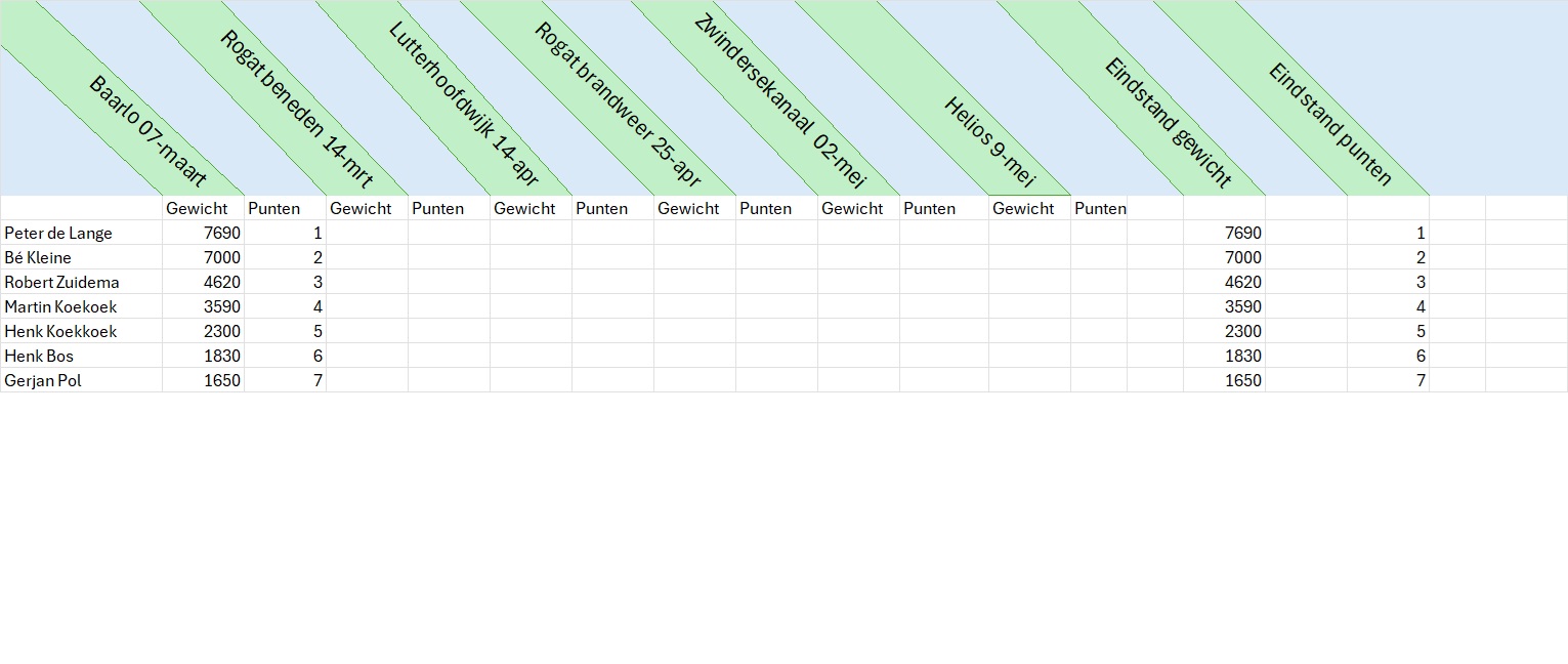 Einduitslag Zaterdagcompetitie gewicht