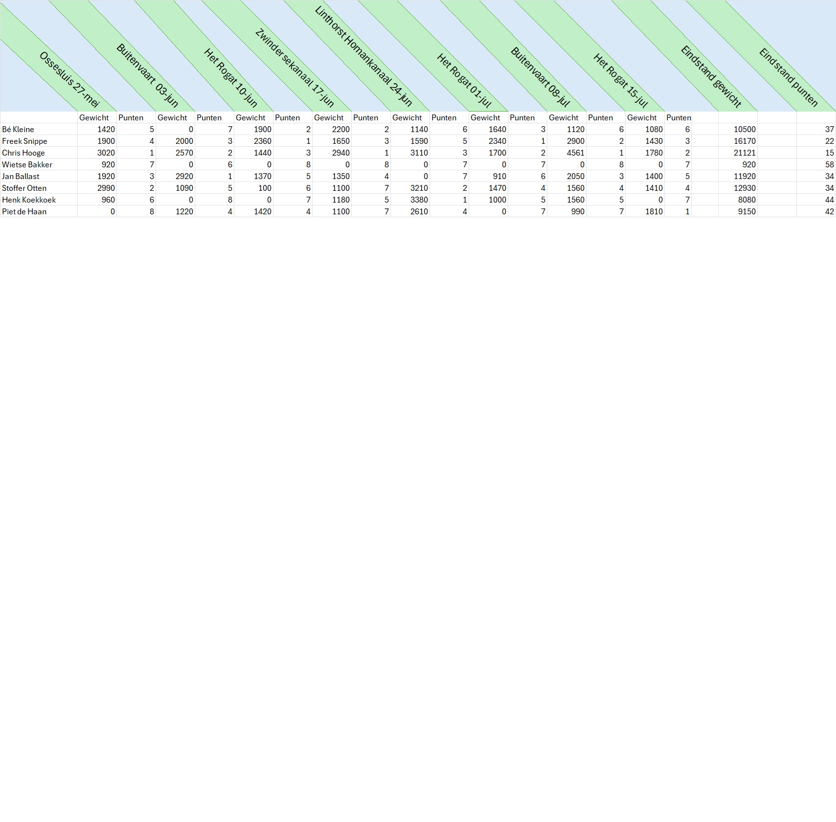 Zomer competitie deze zal bestaan uit 8 wedstrijden. (aftrek 2 wedstrijden)
